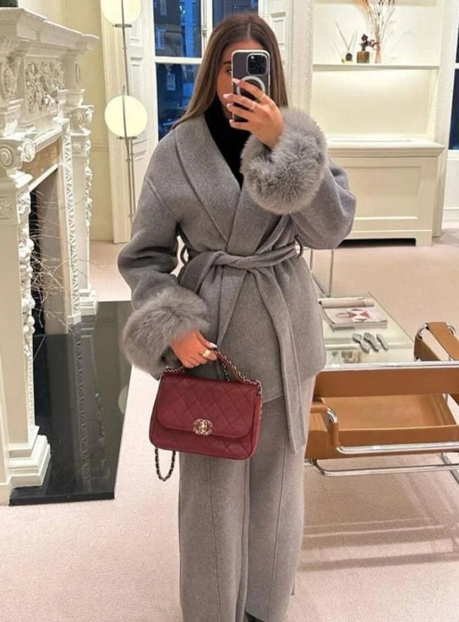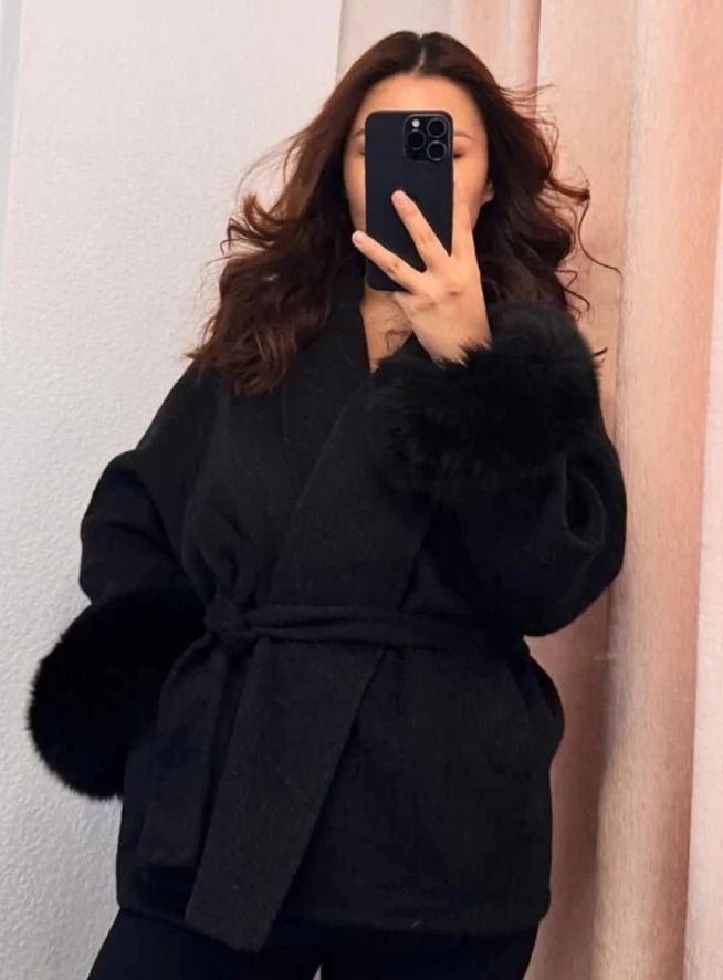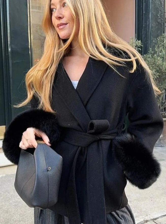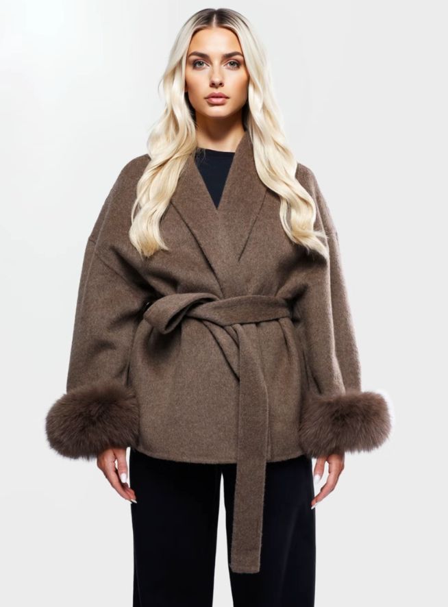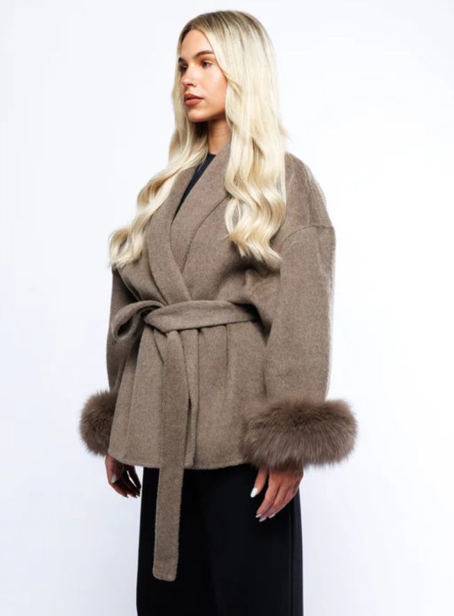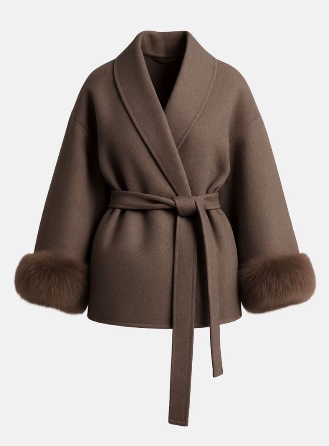 Enveloppe-toi d’une élégance instantanée avec le manteau Elsa ceinturé fourrure. Sa coupe structurée et sa ceinture ajustable sculptent la silhouette.