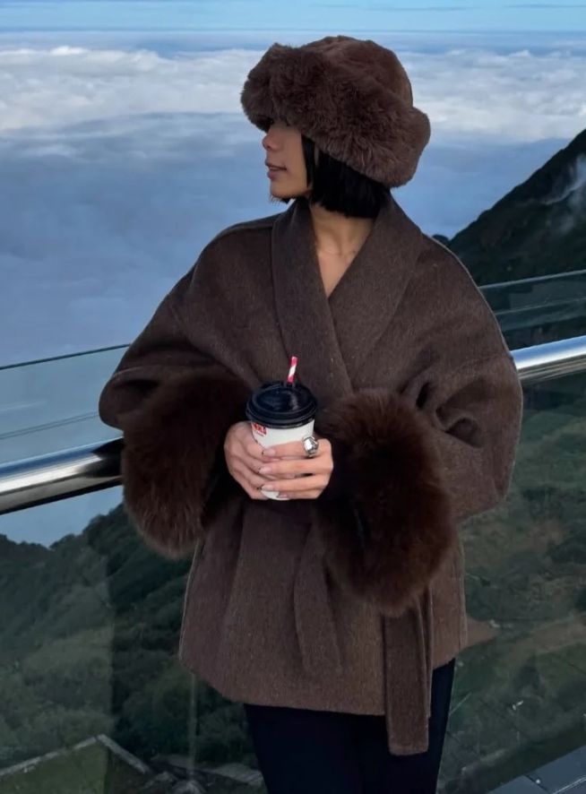 Entretien : nettoyage à sec recommandé pour préserver la matière et la fourrure.