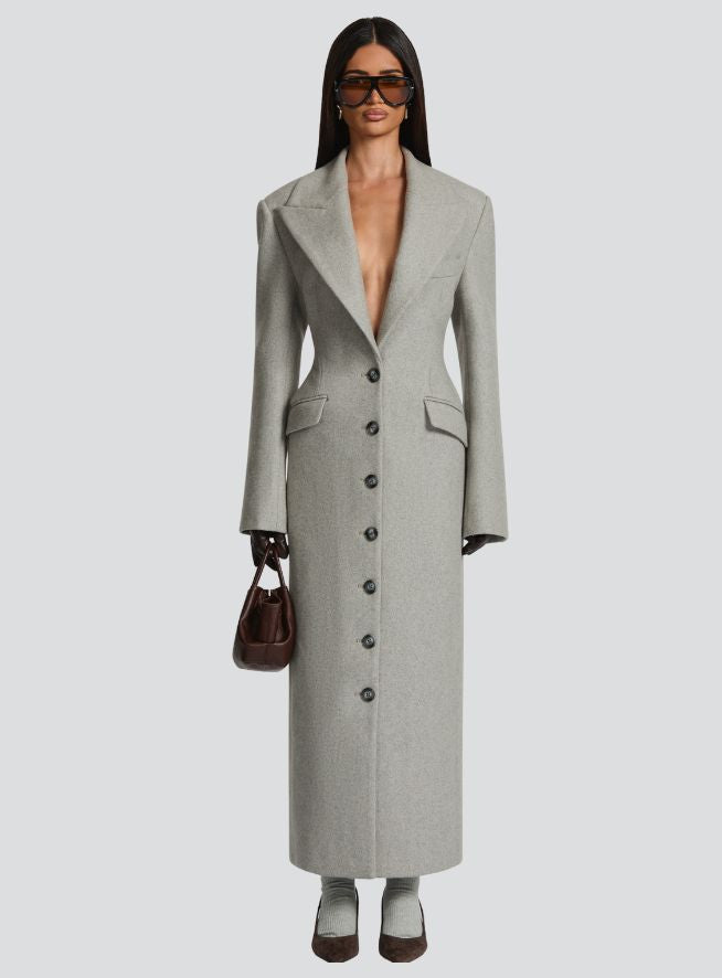 Le Ursula manteau long silhouette couture est une pièce statement pensée pour celles qui veulent une allure forte et élégante.